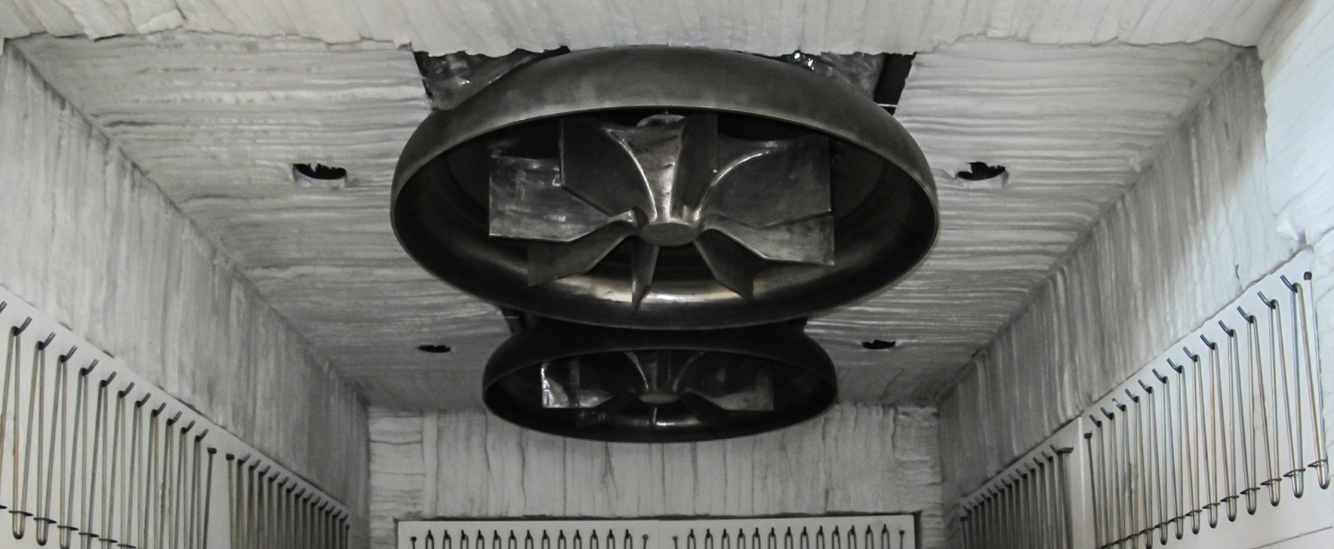 Forno a camera per il trattamento termico in atmosfera di gas inerte per la ricottura di componenti in lega per l’industria aerospaziale. Le parti da trattare vengono manipolate da una macchina di carico automatico. Il riscaldo avviene tramite resistenze Kanthal ROB. Il ricircolo dell’aria ad alta velocità, ottimizzato mediante tecniche CFD, assicura un’elevata uniformità di temperatura. Tutti i componenti del forno sono facilmente rimovibili per operazioni di manutenzione.