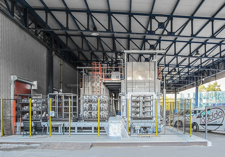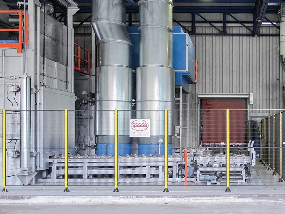 Un sistema di traslazione ortogonale consente l’instradamento automatico dei cestoni verso il forno di invecchiamento artificiale oppure verso eventuali stazioni di raddrizzatura, con gestione efficiente dei buffer intermedi.