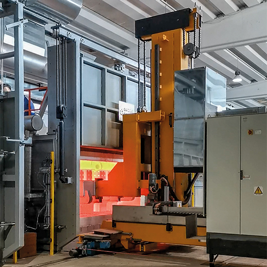 I forni di austenitizzazione sono equipaggiati con bruciatori autorecuperativi ad alta efficienza, mentre i forni di rinvenimento sono dotati di ventilatori di ricircolo e muffola interna, al fine di garantire un’elevata uniformità termica.